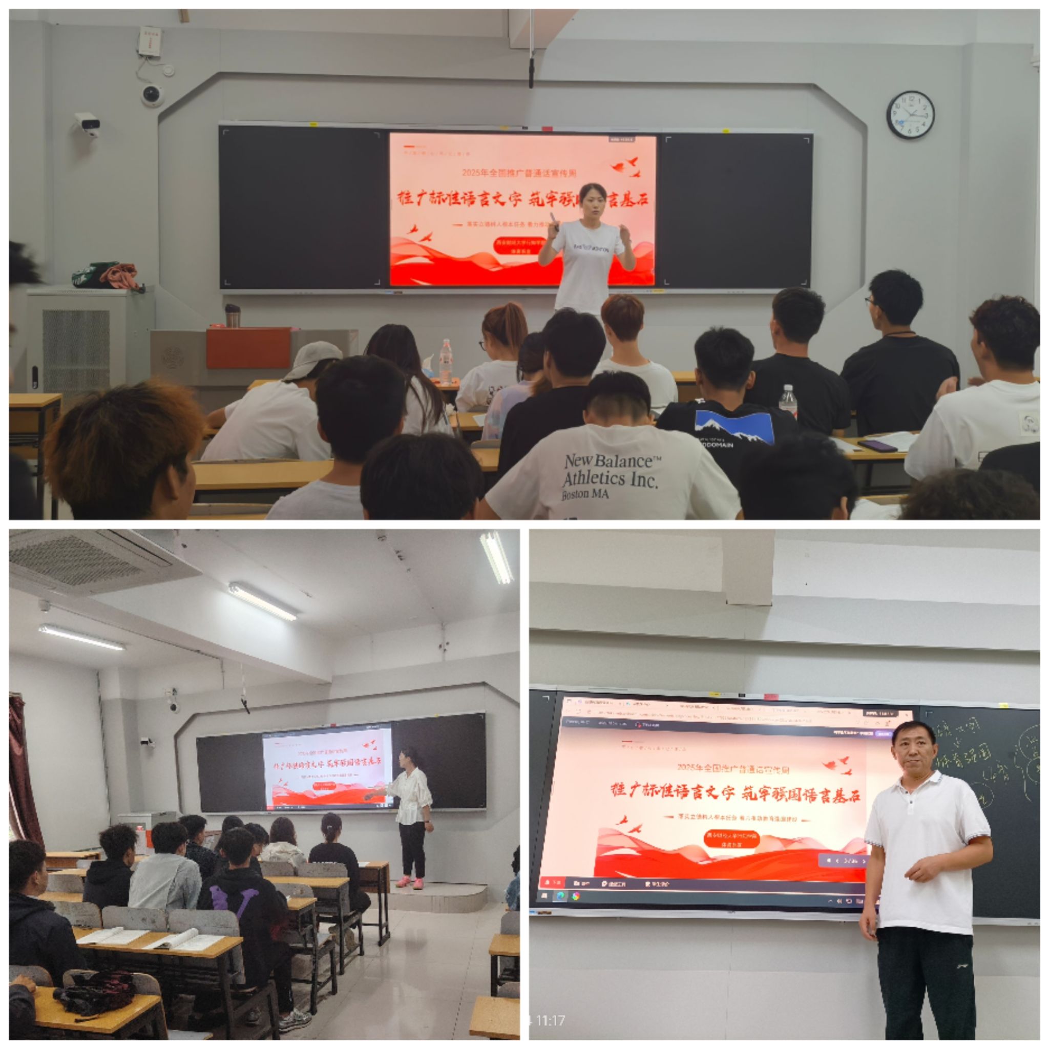 为深入贯彻落实国家关于推广国家通用语言文字的重要精神,进一步加大国家通用语言文字推广力度,促进铸牢中华民族共同体意识,体育教学部于2025年9月5日-15日期间面向各年级学生开展了以 “加大国家通用语言文字推广力度,促进铸牢中华民族共同体意识”为主题的普通话宣传活动。活动包括“开学第一课”、推普宣讲两部分,取得了良好的效果。
